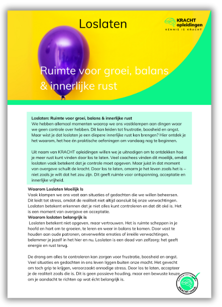Ga direct naar de gratis download โLoslaten met informatie en oefeningenโ , De coach tool die je coachee helpt loslaten